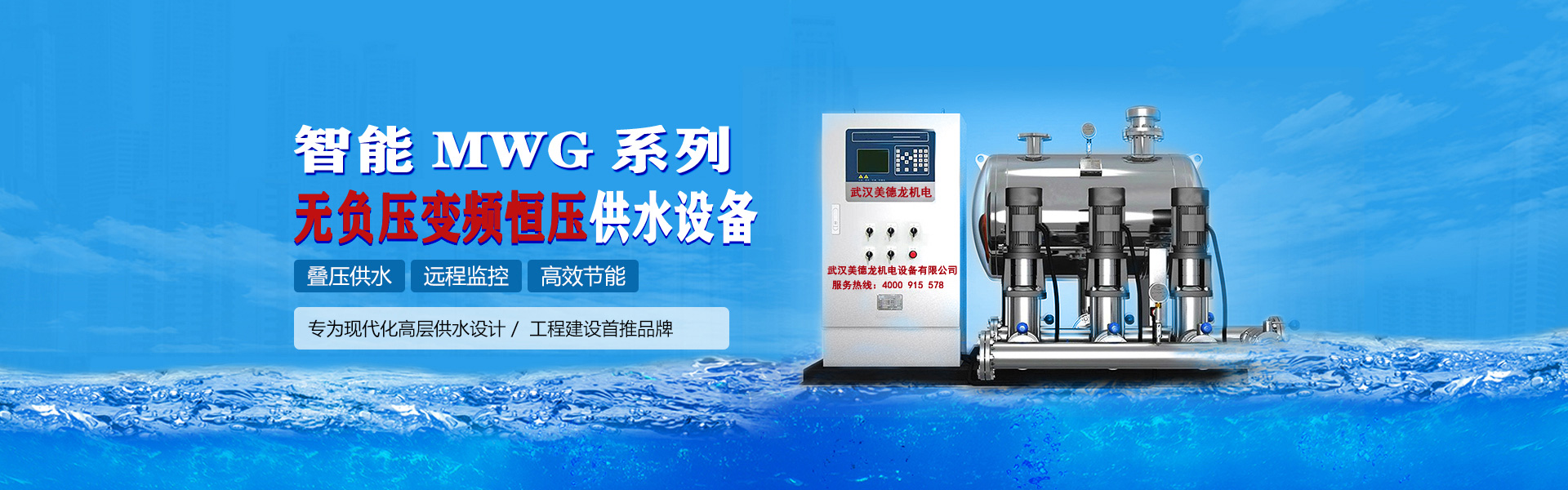 武漢美德龍機電設備有限公司位于中國九省通衢的武漢市。是國內一家集研制、開發、生產、銷售、服務于一體的多元化企業。致力于變頻器、PLC、人機界面、變頻節能、空氣能熱泵、鍋爐、水泵機械等方面技術的開發和應用,匯集國內外先進的機電自動化技術,產品應用于生活供水、熱水暖通、冷卻空調、消防、排污、普通工業、化工、重工業、市政、水利、環保、污水處理、輕工機械、抽取地下水、純水、反滲透、船用、泳池、農業、漁業、家庭及園藝用途等領域 ,公司主導產品包括:變頻泵、變頻恒壓供水設備、無負壓供水設備、變頻恒壓供水控制器、液位控制器、真空引水罐、氣壓罐、集(分)水器、定壓補水裝置、真空脫氣機、電子水處理儀、全程水處理器、旁流水處理器、次氯酸鈉發生器、二氧化氯發生器、紫外線殺菌消毒器、過濾沙缸、智能箱式泵站、不銹鋼水箱、智能液位(遠程)監測儀、污水提升裝置、消防給水設備、控制柜、各類水泵、空氣能熱水器、電輔加熱器、及熱水系統工程。
